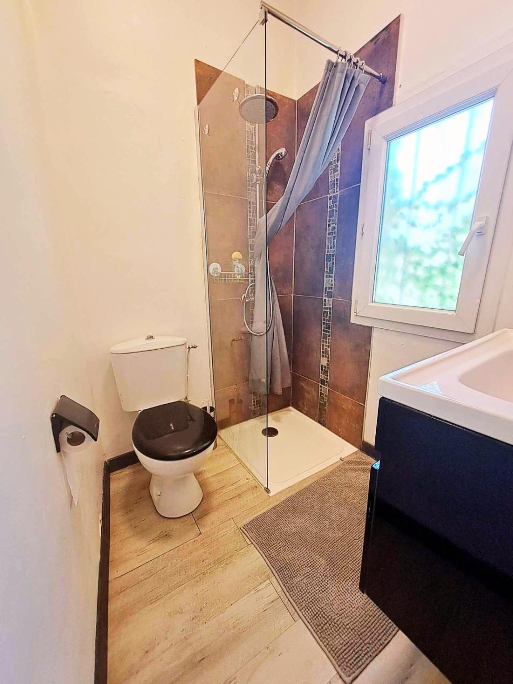 Appartement. Located on the first floor, this studio has a small bathroom with towels and toiletries provided. The shower in the bathroom measures 70 cm x 70 cm.