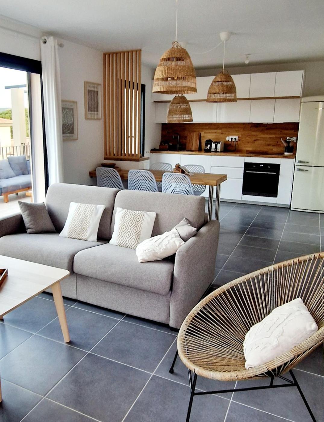Appartement - Vue sur Jardin. This spacious apartment comprises 1 living room, 2 separate bedrooms and 1 bathroom with a shower and free toiletries. In the well-equipped kitchen, guests will find a stovetop, a refrigerator, a dishwasher and kitchenware. The air-conditioned apartment provides a flat-screen TV with satellite channels, a washing machine, a private entrance, soundproof walls as well as garden views. The unit offers 5 beds.