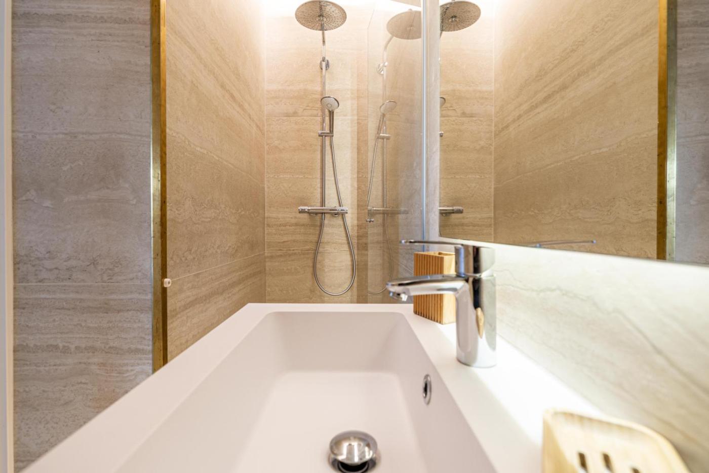 Cet appartement avec climatisation se compose de 2 chambres, dun salon, dune cuisine entièrement équipée avec un réfrigérateur et une machine à café, ainsi que de 2 salles de bains avec une douche et un sèche-cheveux. Une télévision à écran plat est à votre disposition.