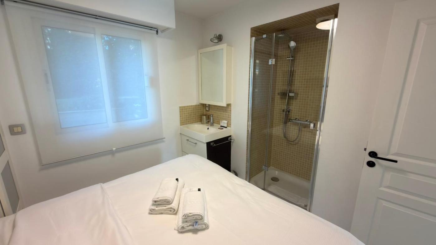 Appartement 2 Chambres. The well-fitted kitchen has a stovetop, a refrigerator, a dishwasher and kitchenware. The spacious air-conditioned apartment features a flat-screen TV, a washing machine, a private entrance, a coffee machine as well as garden views. The unit has 3 beds.