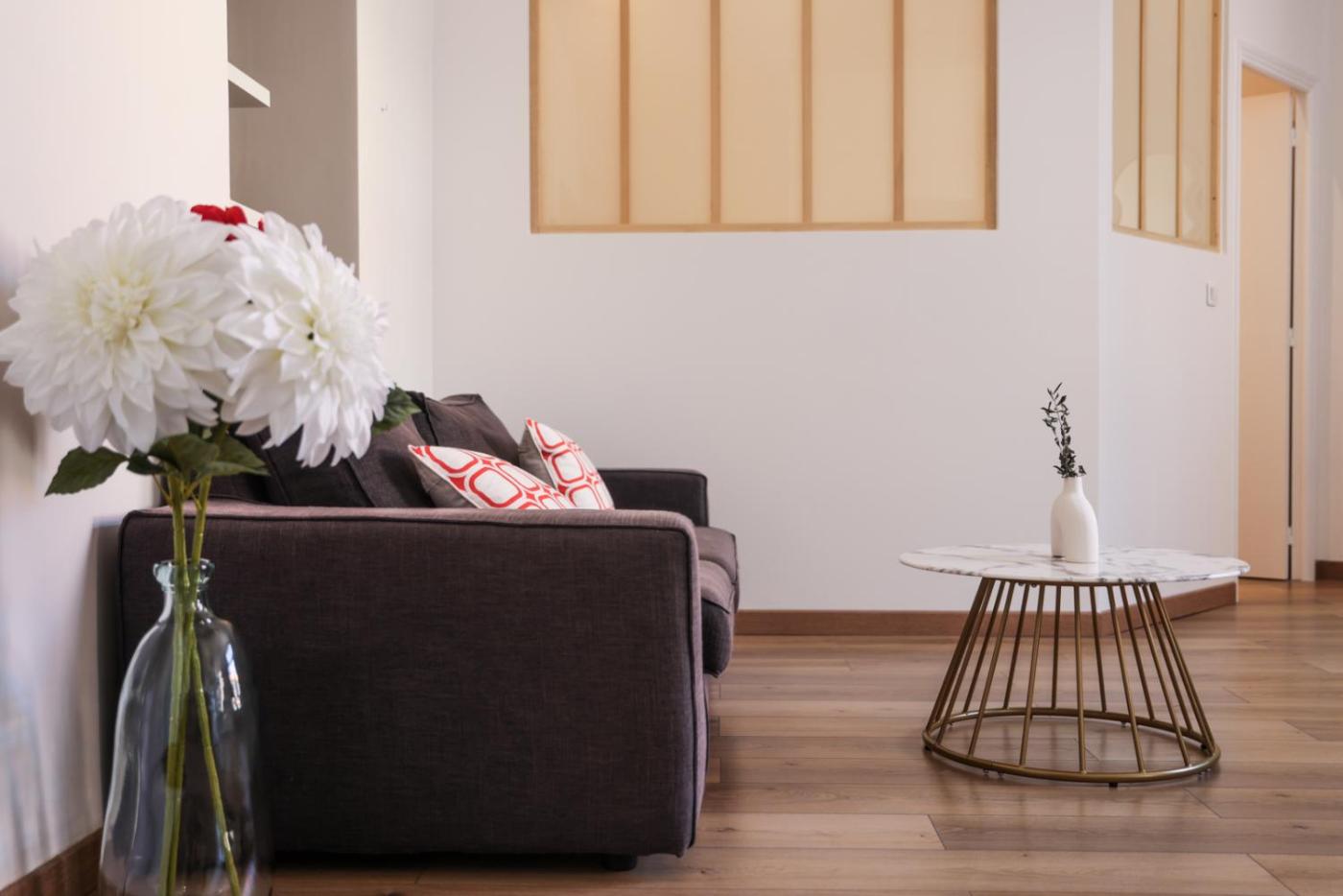 Appartement 1 Chambre. This apartment comes with 1 living room, 1 separate bedroom and 1 bathroom with a shower and free toiletries. In the kitchen, guests will find a stovetop, a refrigerator, kitchenware and an oven. This apartment is air-conditioned and has a seating area with a flat-screen TV, a washing machine, a tea and coffee maker, a dining area, as well as a wardrobe. The unit has 2 beds.