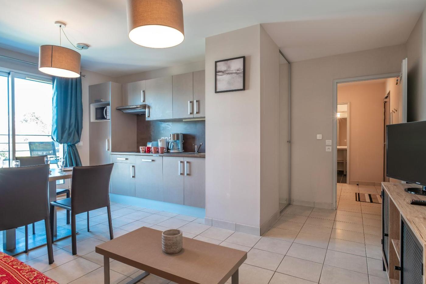 Appartement 2 Chambres. Guests will have a special experience as this apartment provides a private pool. This apartment is comprised of 1 living room, 2 separate bedrooms and 2 bathrooms with a bath and a shower. In the well-equipped kitchen, guests will find a refrigerator, a dishwasher, kitchenware and a microwave. Featuring a terrace with garden views, this apartment also offers a tea and coffee maker and a TV. The unit offers 4 beds.