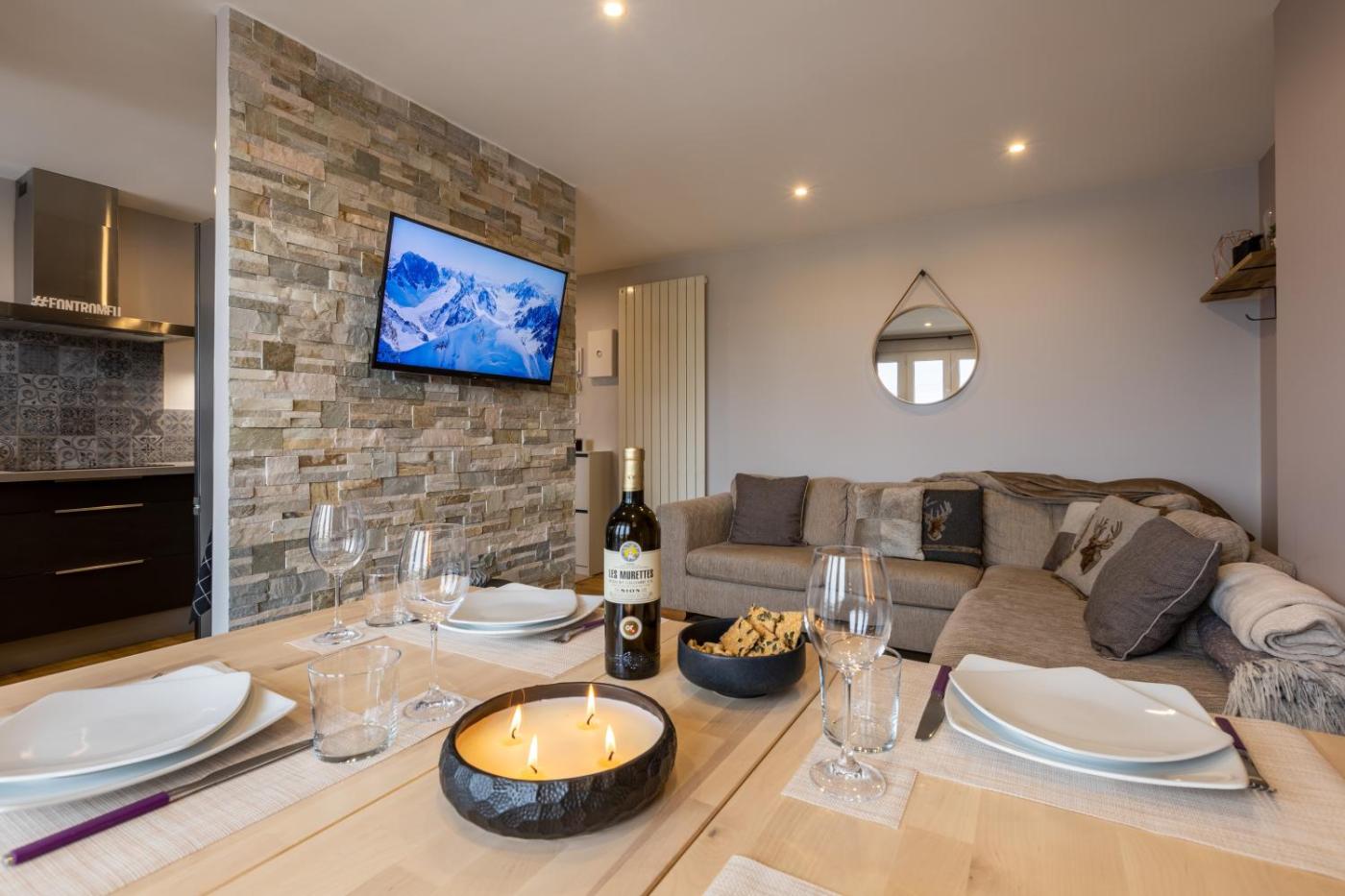 Appartement 1 Chambre. This apartment consists of 1 living room, 1 separate bedroom and 1 bathroom with a shower and free toiletries. The well-fitted kitchen features a stovetop, a refrigerator, a dishwasher and kitchenware. Featuring a terrace with mountain views, this apartment also provides a washing machine and a flat-screen TV. The unit offers 1 bed.