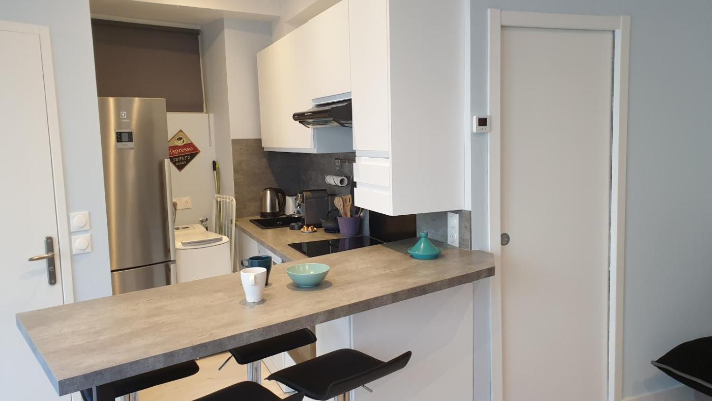 Cet appartement se compose de 1 chambre, dun salon, dune cuisine entièrement équipée avec un réfrigérateur et une machine à café, ainsi que de 1 salle de bains avec une douche et un sèche-cheveux. Des serviettes et du linge de lit sont à disposition.
