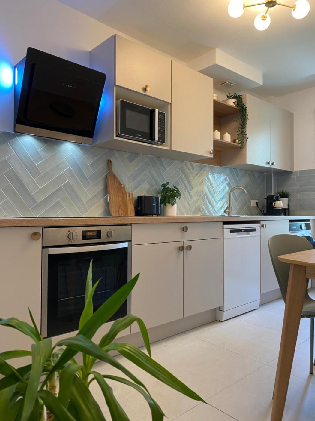 Chambre Double avec Balcon (3 Adultes). The well-equipped kitchen features a stovetop, a refrigerator, a dishwasher and kitchenware. The spacious double room provides a washing machine, a private entrance, a balcony with garden views as well as a private bathroom featuring a shower. The unit offers 3 beds.