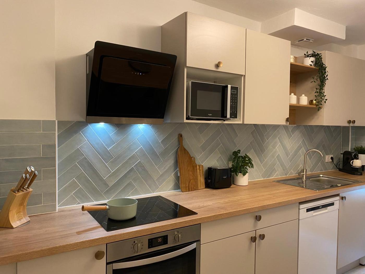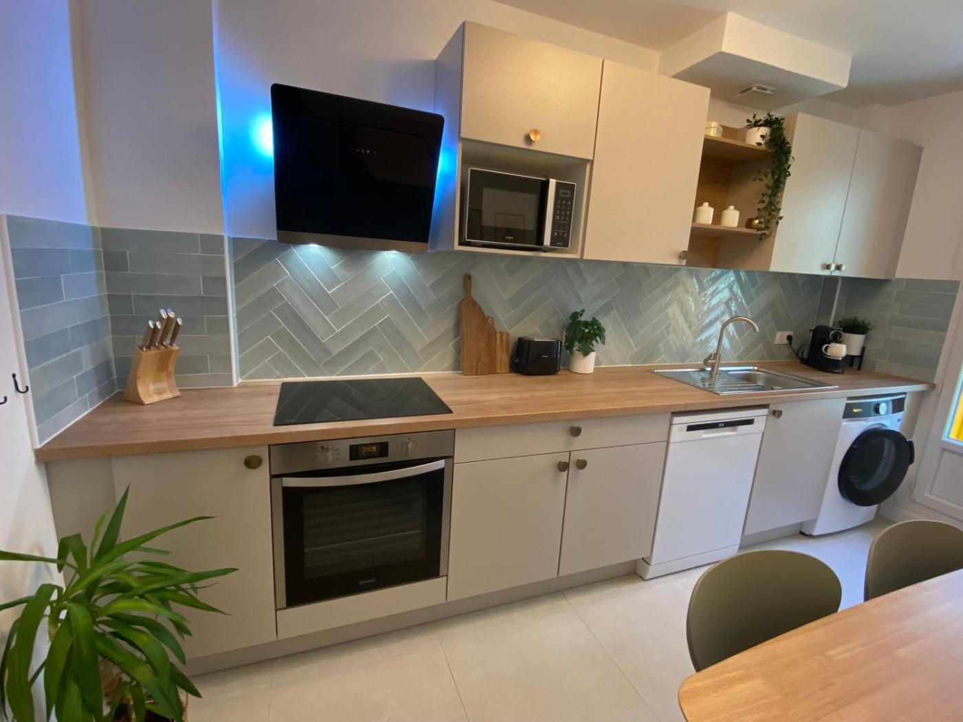 Chambre Double - Vue sur Jardin. The fully equipped kitchen has a stovetop, a refrigerator, a dishwasher and kitchenware. Among the room amenities are a washing machine, a private entrance and soundproof walls as well as garden views. The unit has 1 bed. ;
