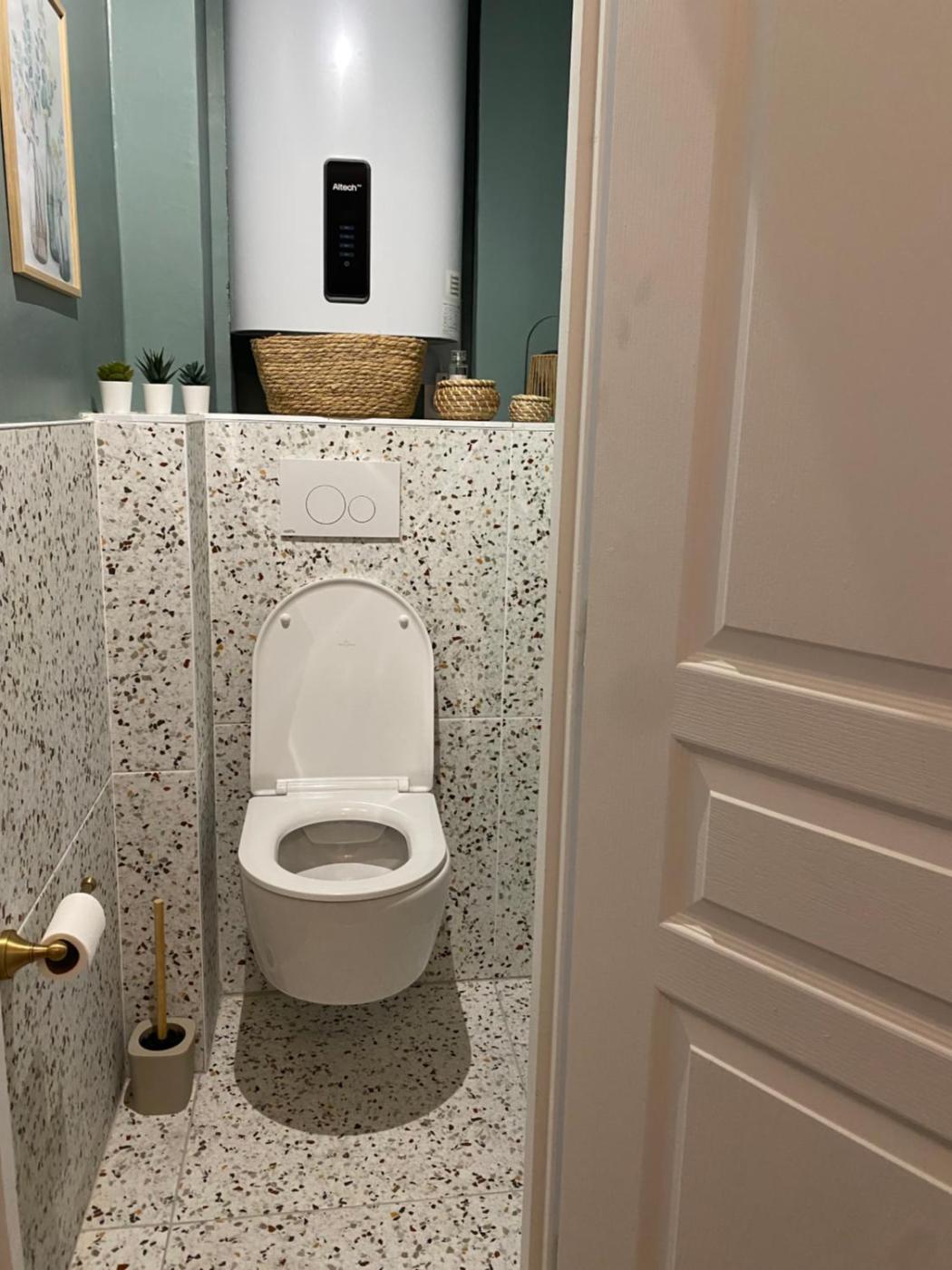 Chambre Double avec Salle de Bains Privative. The well-equipped kitchen has a stovetop, a refrigerator, a dishwasher and kitchenware. The double room offers a washing machine, a private entrance, a balcony with a quiet street view as well as a private bathroom boasting a shower. The unit has 1 bed. ;