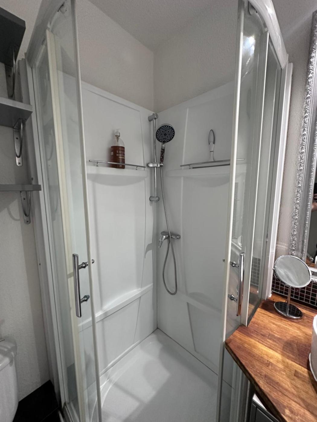 Studio avec Terrasse. The well-fitted kitchen features a stovetop, a refrigerator, kitchenware and a microwave. This air-conditioned studio includes a flat-screen TV with streaming services, a private bathroom as well as a terrace with a quiet street view. The unit offers 1 bed.