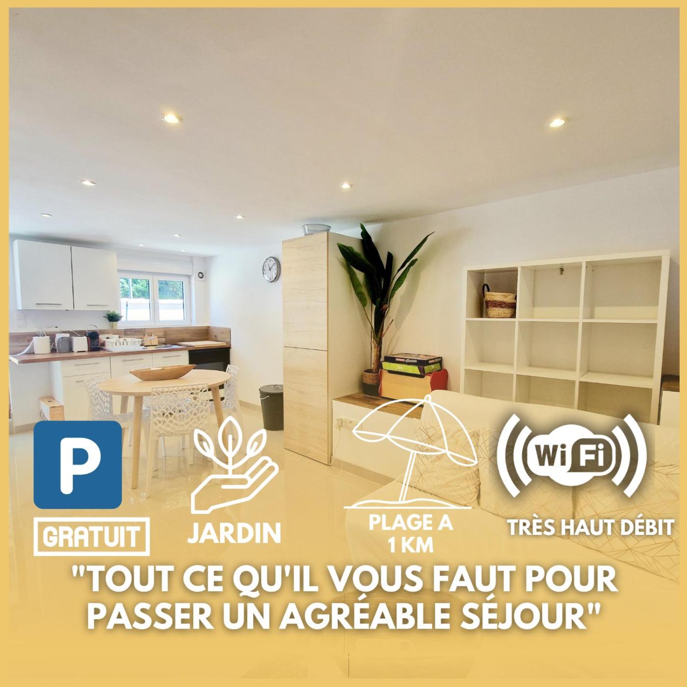 Maison 1 Chambre. Boasting a private entrance, this air-conditioned holiday home features 1 living room, 1 separate bedroom and 1 bathroom with a shower and a hairdryer. Guests will find a stovetop, a refrigerator, kitchenware and an oven in the kitchen. The holiday home also comes with a barbecue. Featuring a terrace with garden views, this holiday home also features a washing machine and a flat-screen TV with streaming services. The unit has 2 beds.