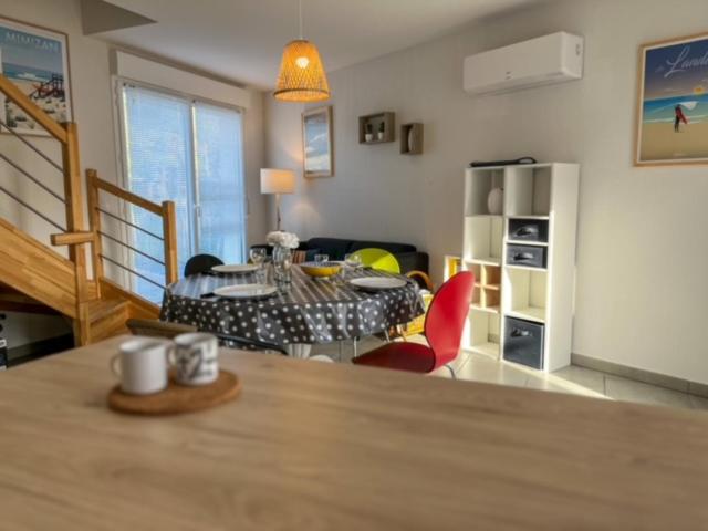 Cet appartement comporte 2 chambres avec la climatisation, un coin repas et une cuisine entièrement équipée avec un réfrigérateur. L’hébergement La Cabane Océan 10 min a pied de Mimizan plage Forêt met à votre disposition un parking privé gratuit.