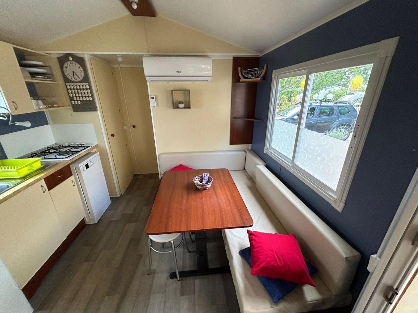 Mobile Home. The air-conditioned mobile home has 2 bedrooms, 1 bathroom and a kitchen. Guests will find a refrigerator, a dishwasher, kitchenware and a microwave in the well-fitted kitchen. The mobile home also comes with a barbecue. Boasting a balcony with mountain views, this mobile home also features a coffee machine and a TV. The unit has 3 beds.