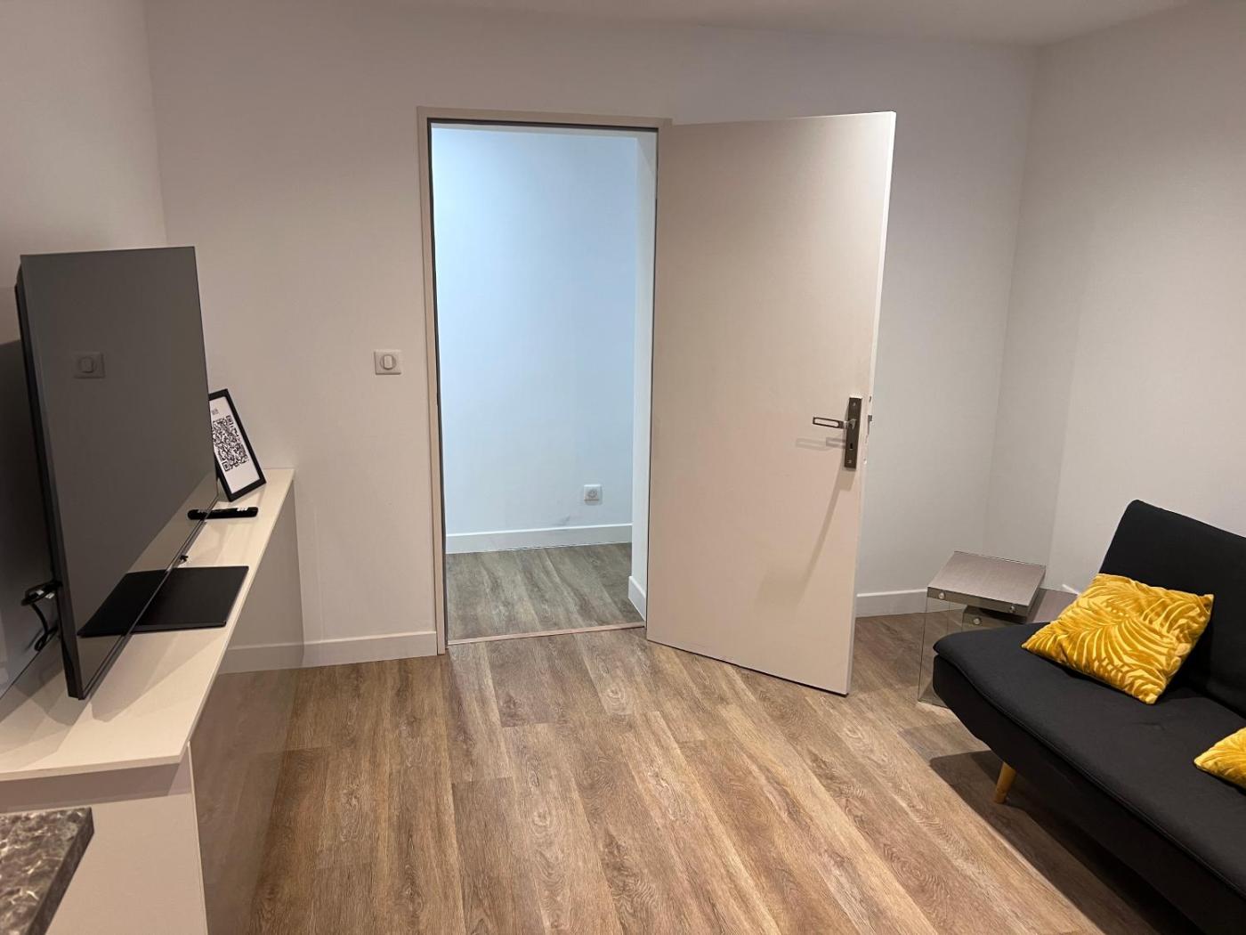 Appartement 1 Chambre. Boasting a private entrance, this air-conditioned apartment includes a kitchen, 1 bedroom and 1 bathroom with a shower and a hairdryer. In the fully equipped kitchen, guests will find a stovetop, a refrigerator, kitchenware and a microwave. Featuring a terrace with garden views, this apartment also offers a coffee machine and a flat-screen TV. The unit has 1 bed.