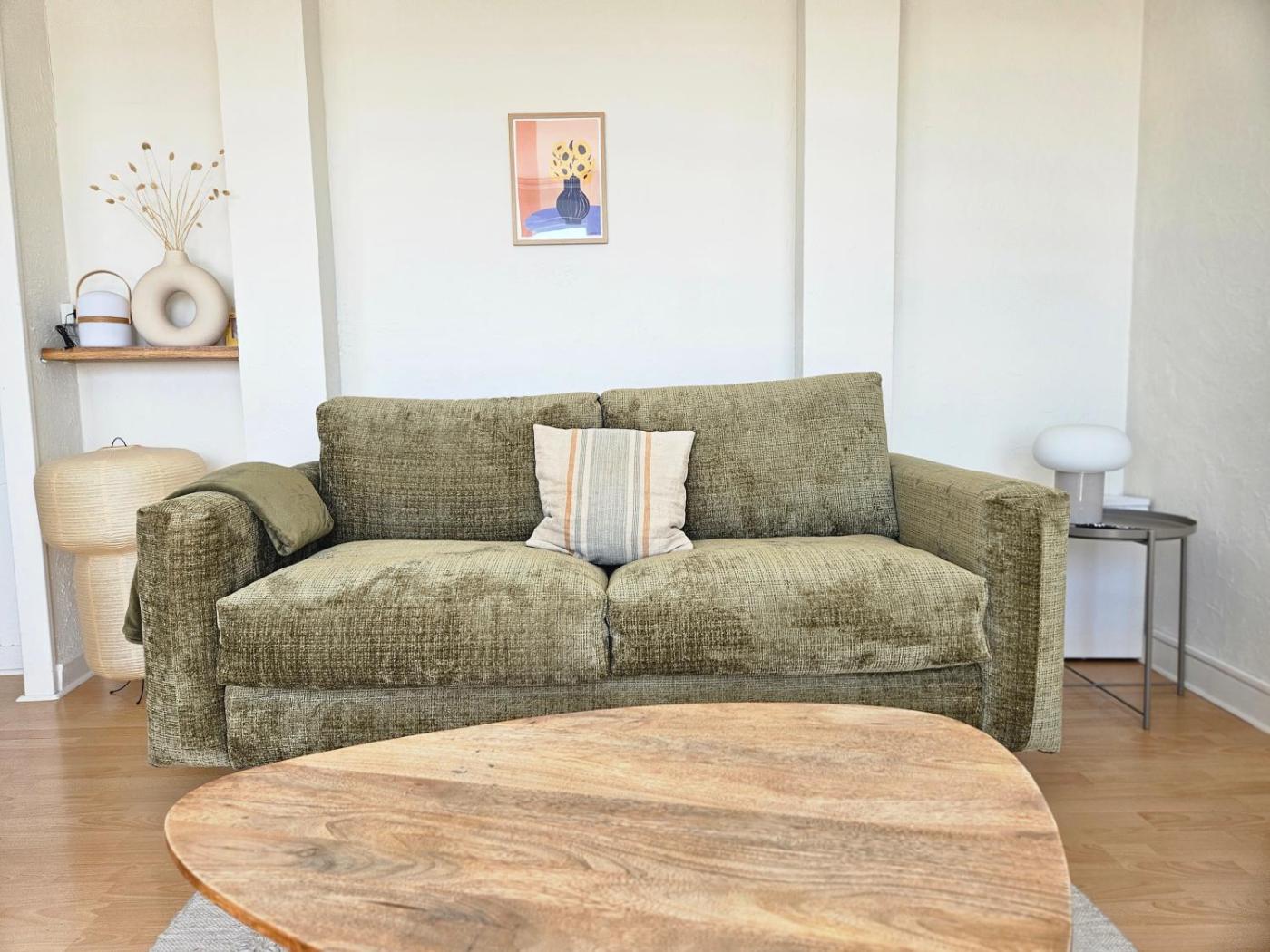 Cet appartement avec climatisation se compose de 1 chambre, dun salon, dune cuisine entièrement équipée avec un réfrigérateur et une machine à café, ainsi que de 1 salle de bains avec une douche et un sèche-cheveux. Des serviettes et du linge de lit sont à disposition.