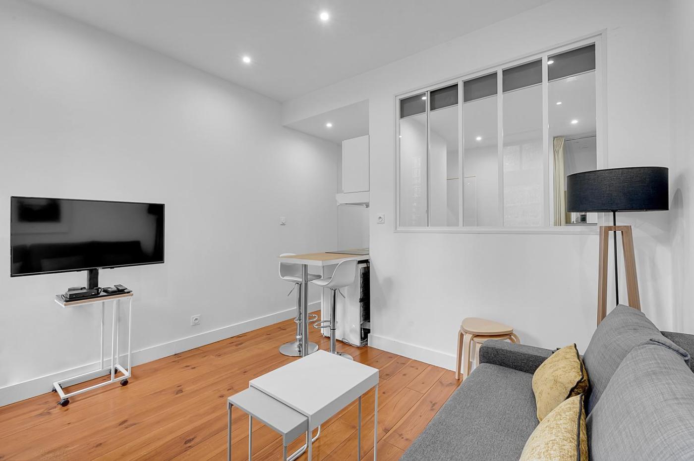 Cet appartement avec climatisation se compose de 1 chambre, dun salon, dune cuisine entièrement équipée avec un réfrigérateur et une machine à café, ainsi que de 1 salle de bains avec une douche. Des serviettes et du linge de lit sont disponibles.