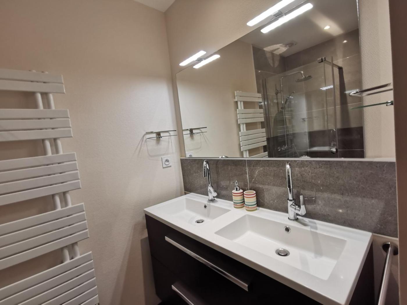 Appartement 1 Chambre. Featuring a private entrance, this apartment is comprised of a kitchen, 1 bedroom and 1 bathroom with a bath or a shower and a hairdryer. The fully equipped kitchen features a stovetop, a refrigerator, a dishwasher and kitchenware. The apartment offers a washing machine, a dining area, a wardrobe, a flat-screen TV, as well as ancourtyard view. The unit offers 1 bed.